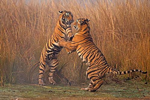 老虎交配,是它们繁衍后代的重要途径。据专家介绍,老虎的交配周期大约为2-3年,每年只有一次交配机会。在这段时间里,雄性老虎会四处寻找配偶,展开激烈的竞争。